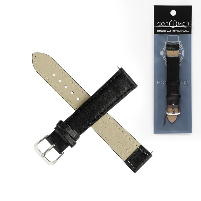 Ремешок для часов "Соломон", 18 мм, натуральная кожа, l-20 см, черный