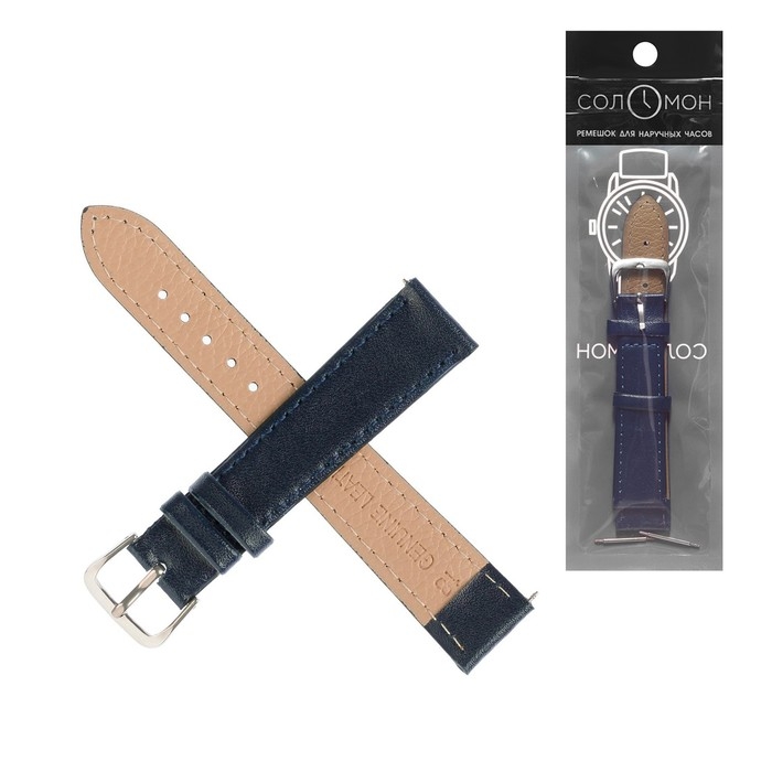 Ремешок для часов "Соломон", 18 мм, натуральная кожа, l-20 см, темно-синий