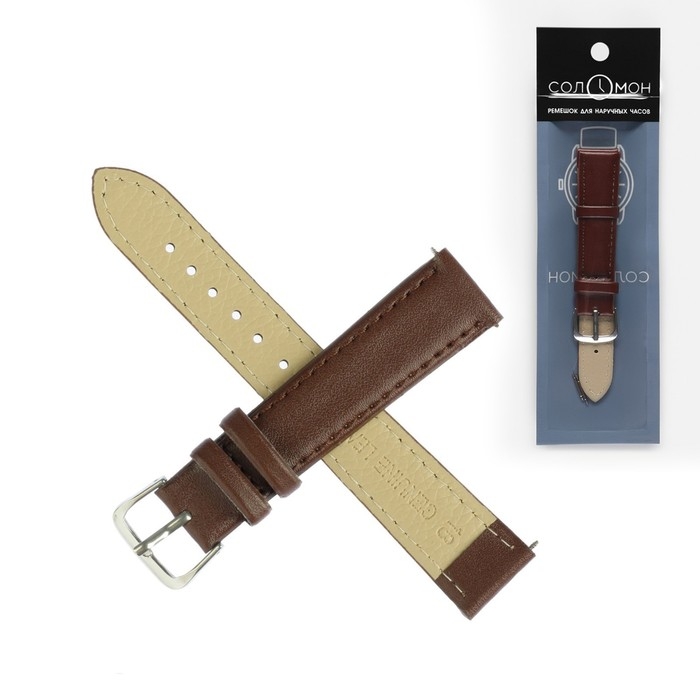 Ремешок для часов "Соломон", 18 мм, натуральная кожа, l-20 см, коричневый