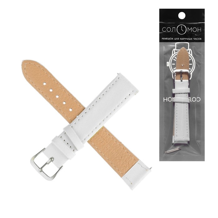 Ремешок для часов "Соломон", 18 мм, натуральная кожа, l-20 см, белый