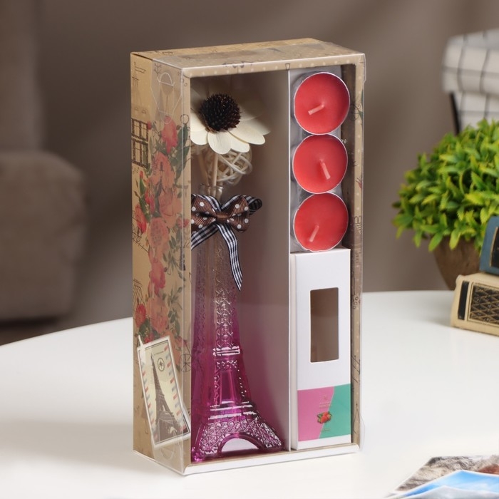 Набор подарочный "Париж" (диффузор и свечи) клубника, "Богатство Аромата"