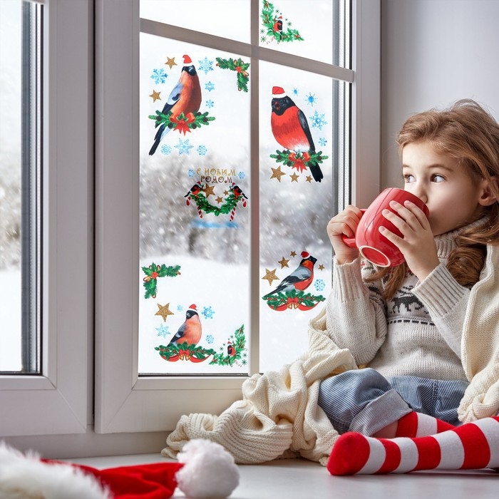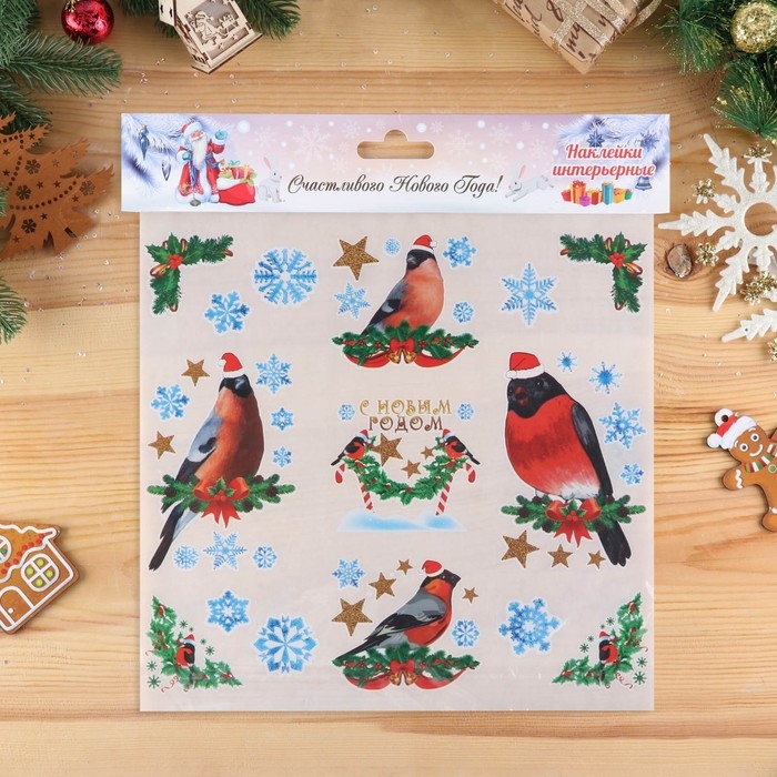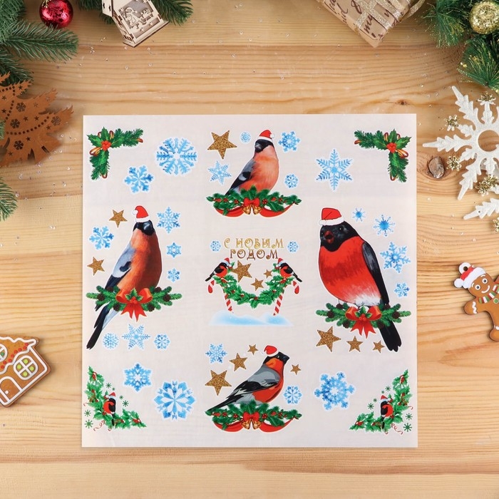 Набор наклеек на окна "Новогодний" снегири, 36 х 36 см