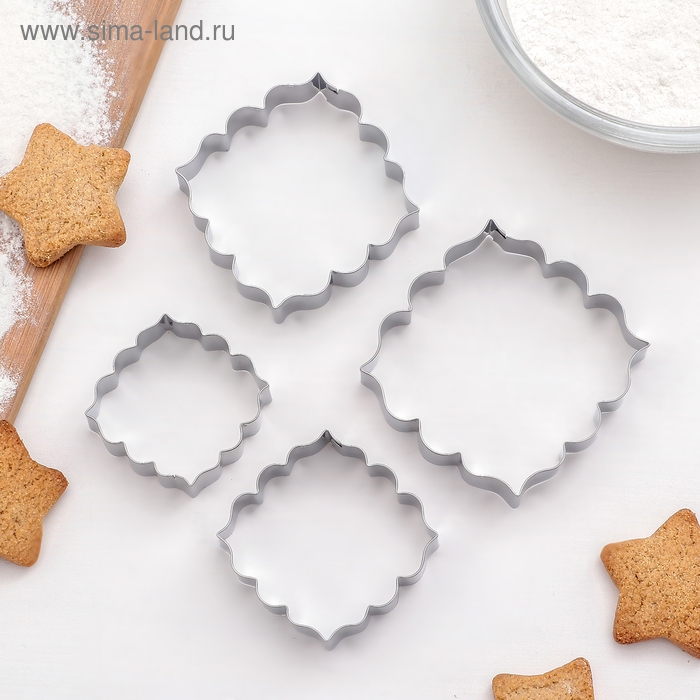 Набор форм для печенья «Рамка с орнаментом», 4 шт, цвет серебристый