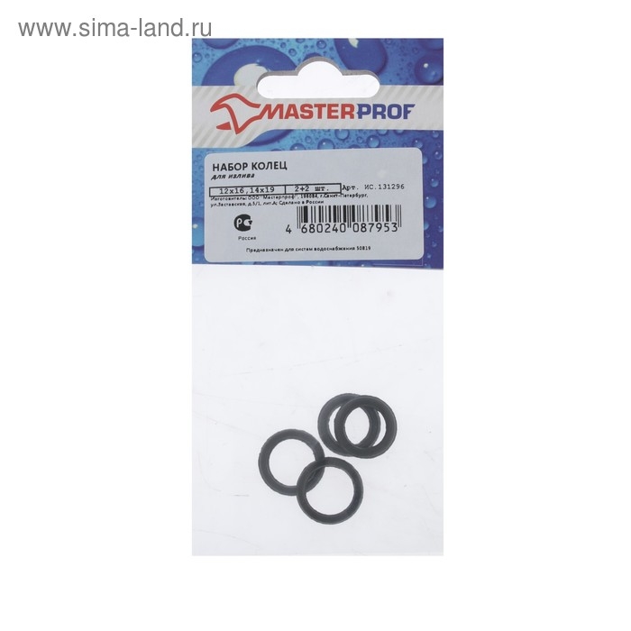 Набор колец Masterprof ИС.131296, для излива, 12х16 мм, 14х19 мм, 2+2 шт.