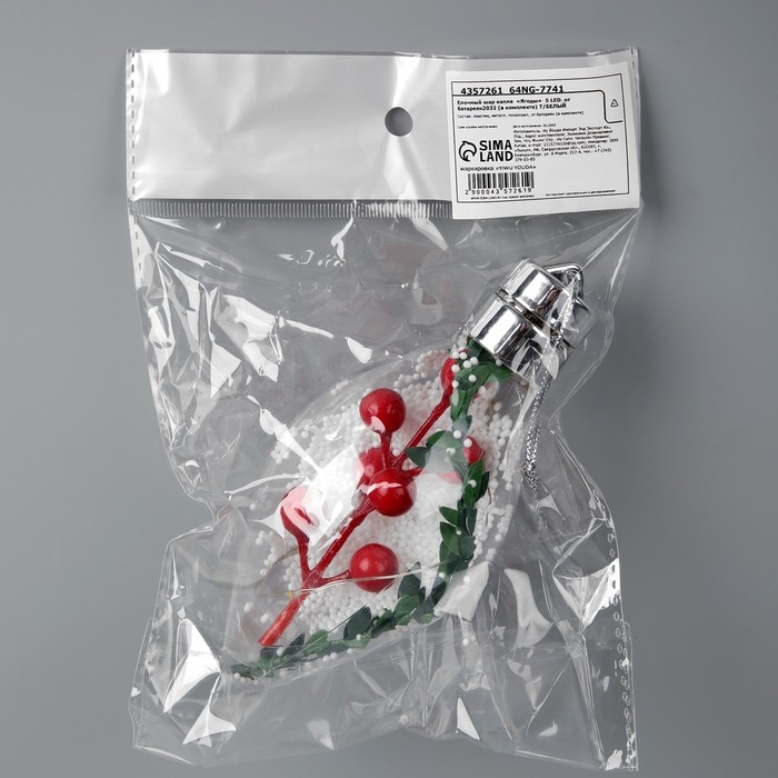 Ёлочный шар «Ягоды», батарейки, 5 LED, свечение тёплое белое
