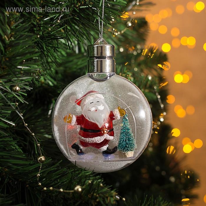 Ёлочный шар «Дед Мороз», батарейки, 5 LED, свечение тёплое белое