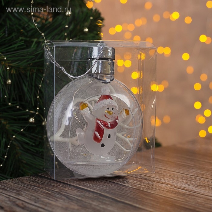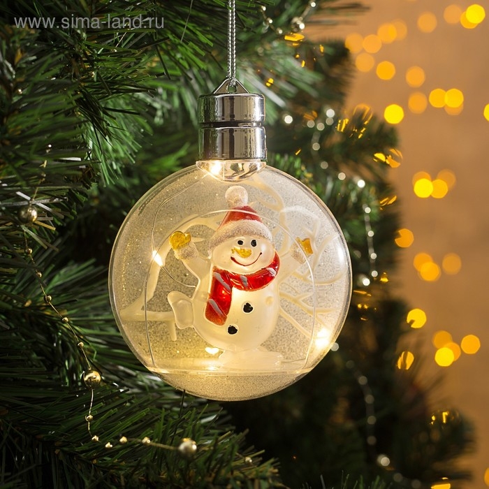 Ёлочный шар «Снеговик», батарейки, 5 LED, свечение тёплое белое