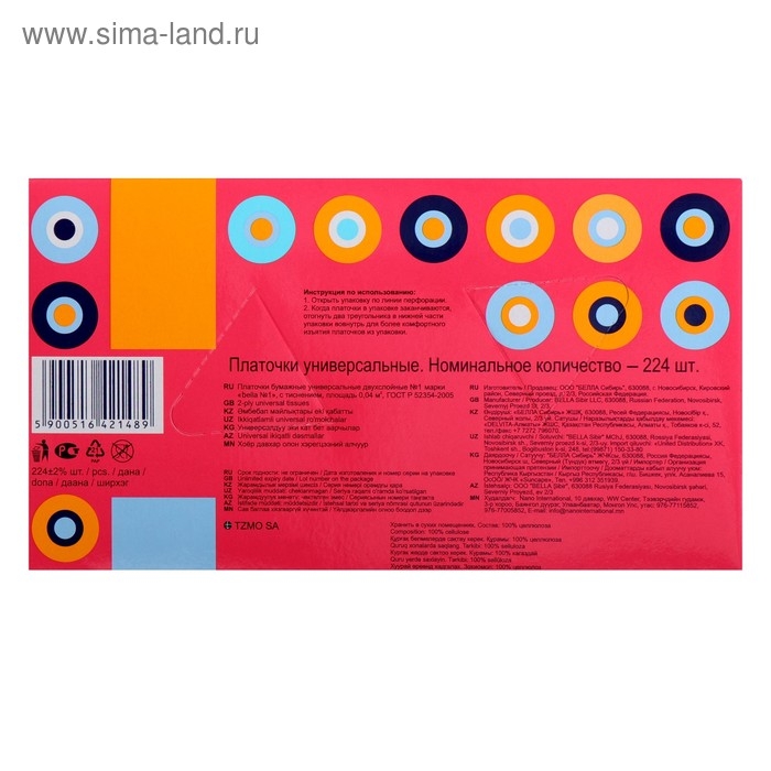 Платочки бумажные Bella: Универсальные Bella №1 по 224 шт.