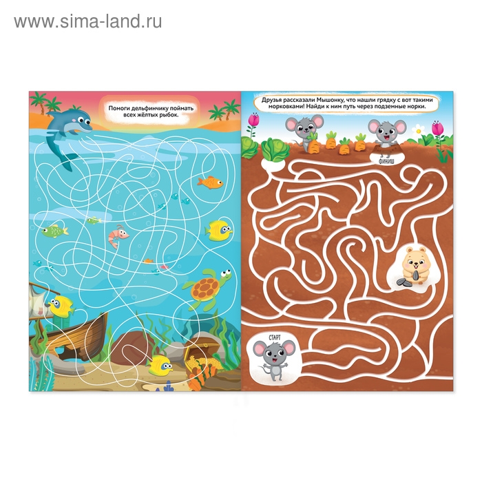 А чтобы интереснее и веселее было выполнять задания, дружные птички, рыбки и зверята помогут вашему ребёнку преодолеть все запутанные коридоры. Не забывайте и про маленькие хитрости: из некоторых лабиринтов можно быстрее найти выход, если прокладывать путь с конца!