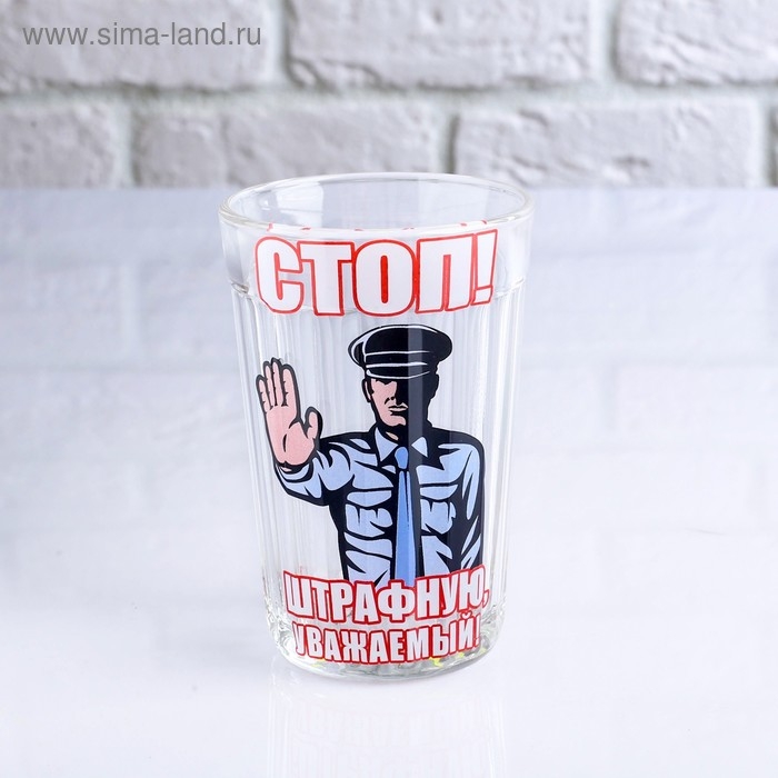Стакан граненый в подарочной упаковке "Стоп! Штрафную уважаемый!" 250 мл