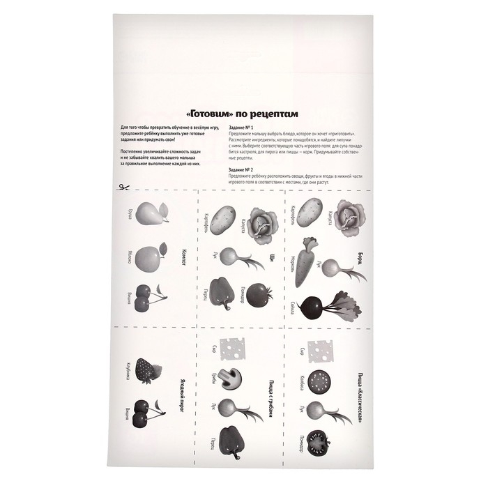 Запоминайте названия овощей, фруктов и ягод. "Готовьте" блюда по рецептам, используя указанные ингредиенты.