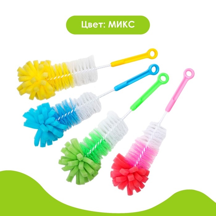 Ёршик для бутылочек с губкой, цвета МИКС