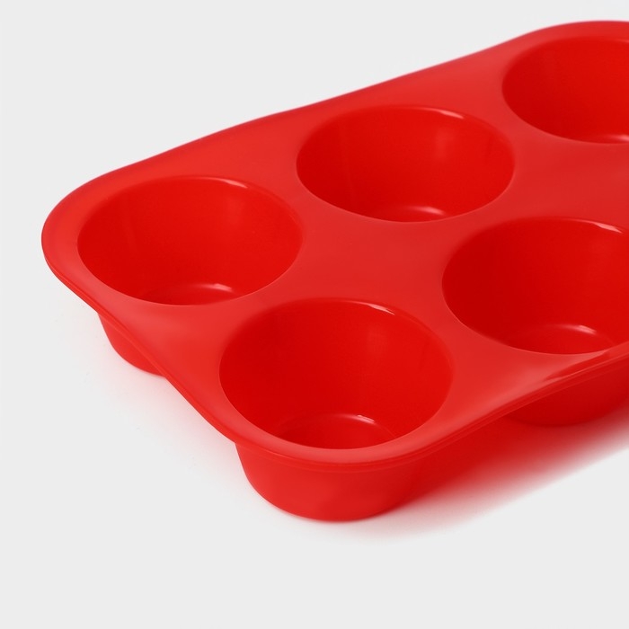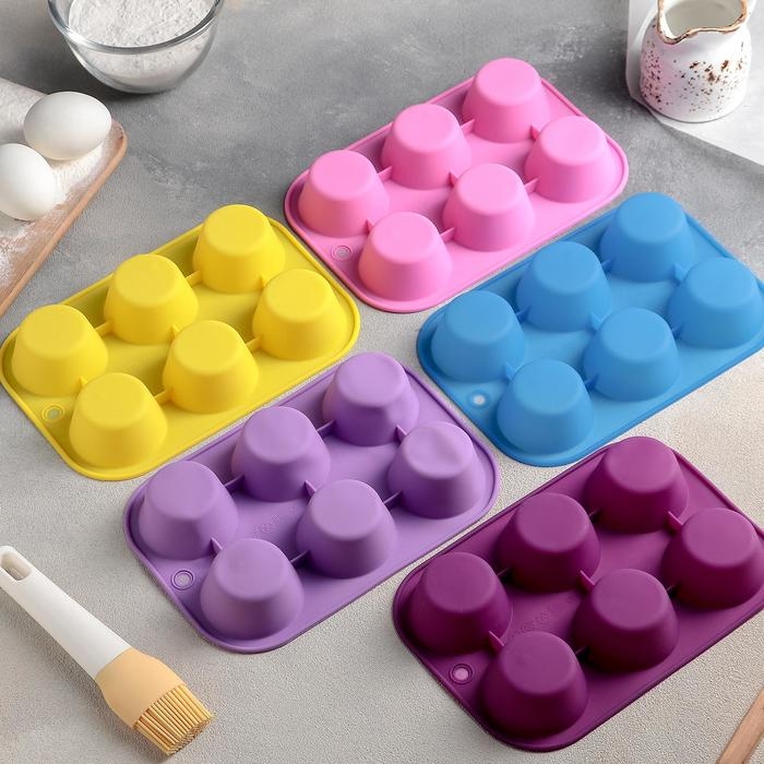 Форма для выпечки Доляна «Фигуры. Круг», силикон, 21,5×14,5 см, 6 ячеек (5,7×5,7×3 см), цвет МИКС