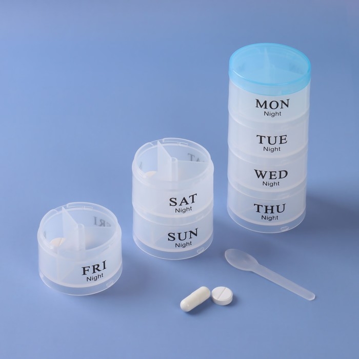 Теперь вы не забудете принять витамины или таблетки в течение дня: удобная и функциональная таблетница поможет распределить приём нужных препаратов по дням недели и вовремя вспомнить о них.