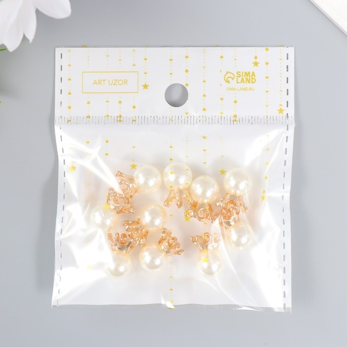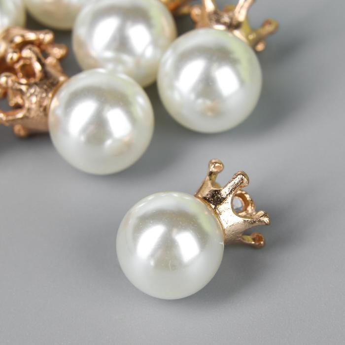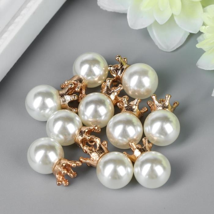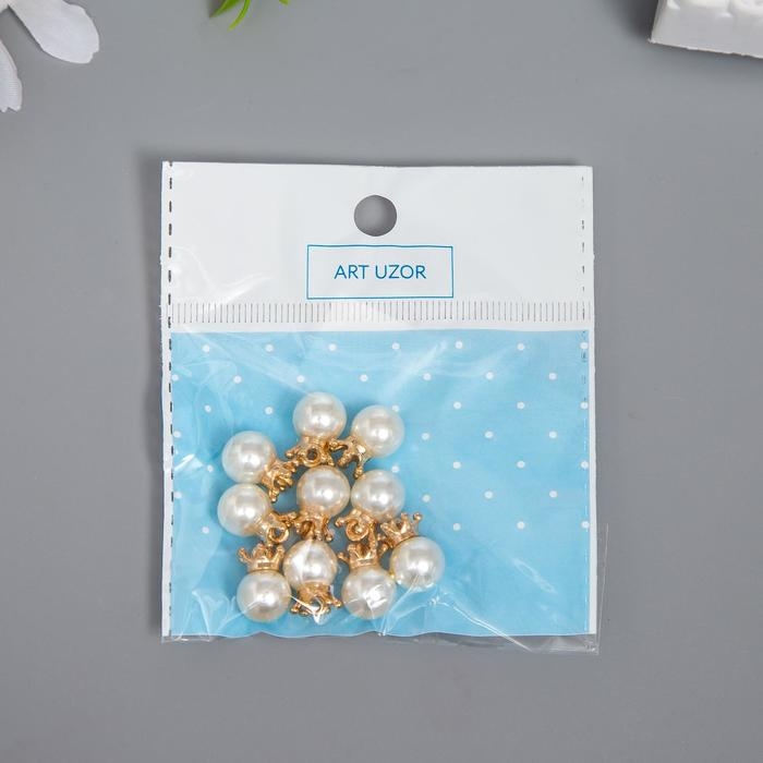 Декор для творчества пластик "Жемчужина с короной и петелькой" набор 10 шт d=1 см