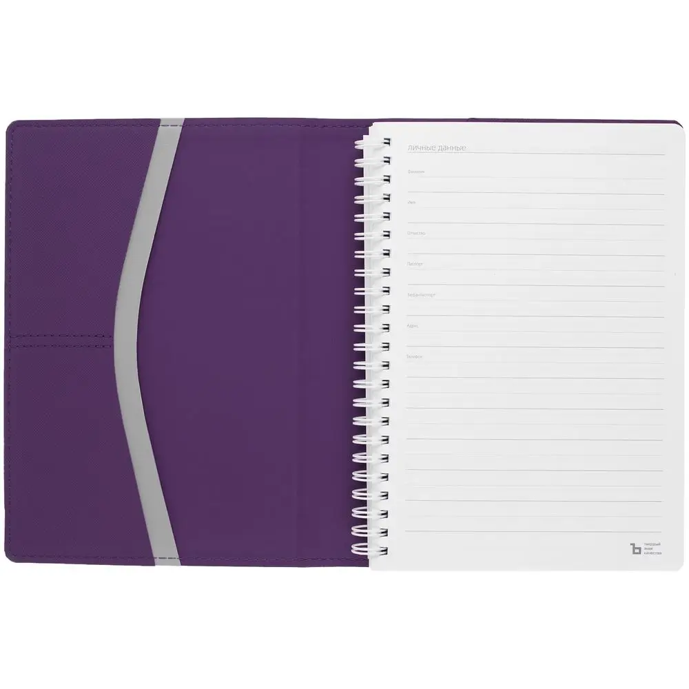 Ежедневник с твердой обложкой, выполнен из материалов Nice Touch, фиолетовый UU и Soft Touch серый, СС и фиолетовый.
