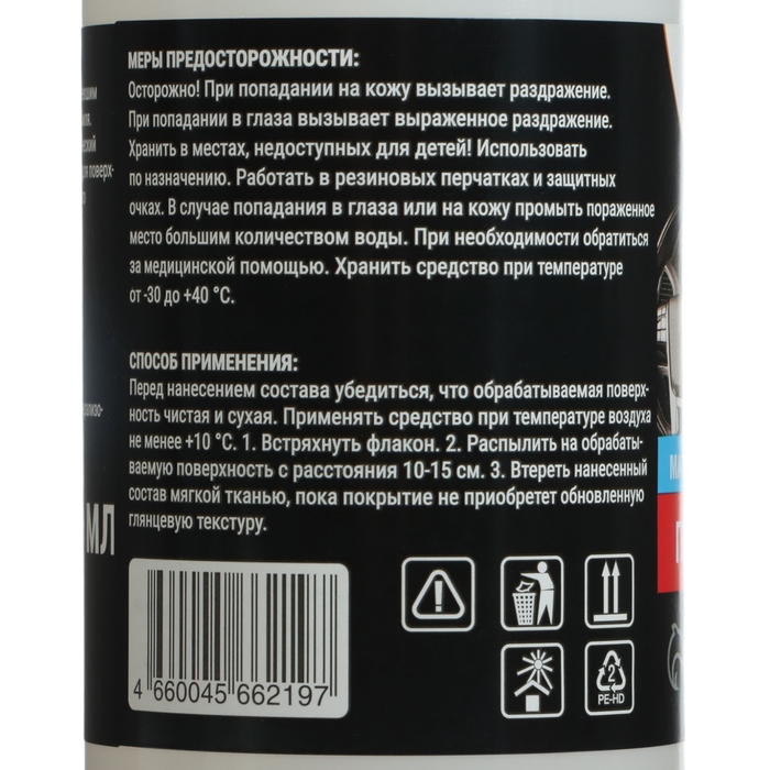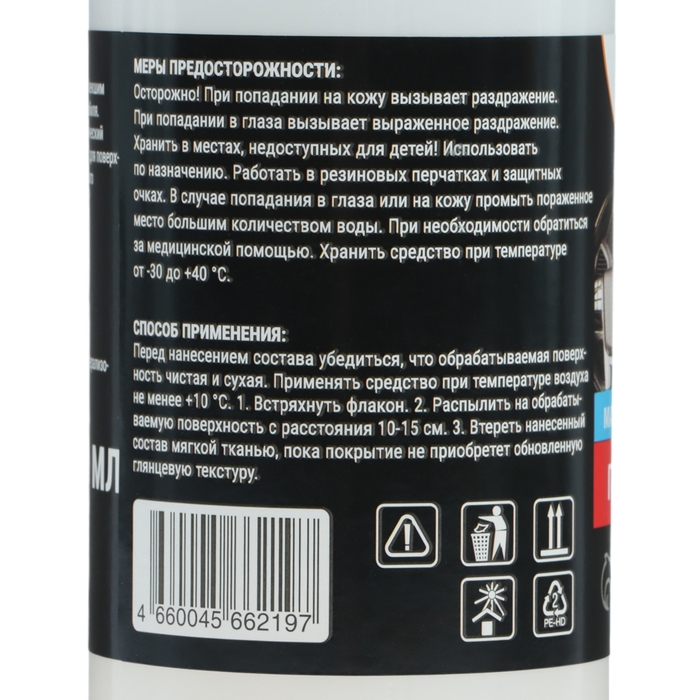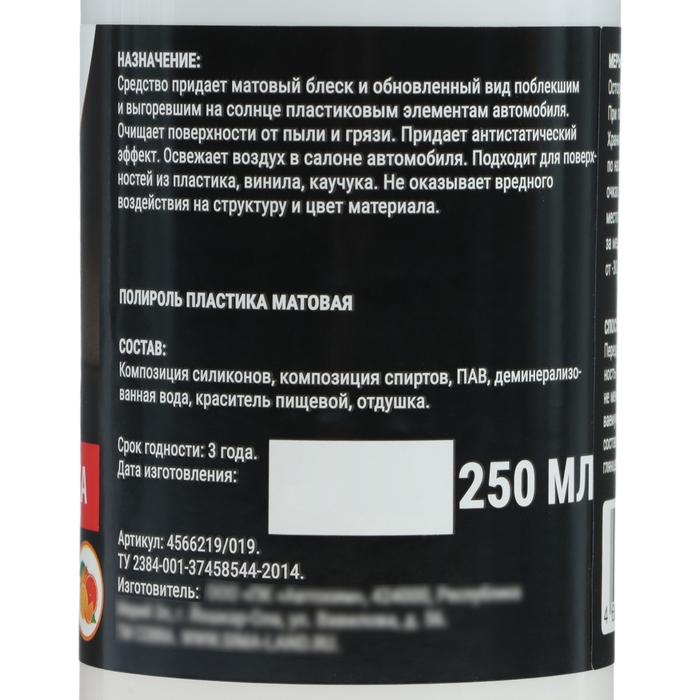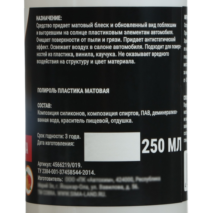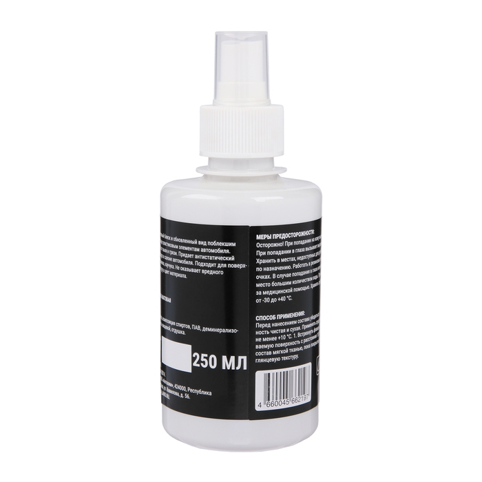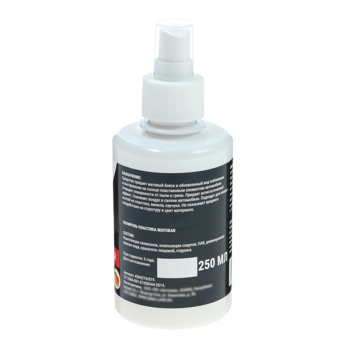 Средство придаст матовый блеск и обновлённый вид поблекшим и выгоревшим на солнце пластиковым элементам автомобиля.