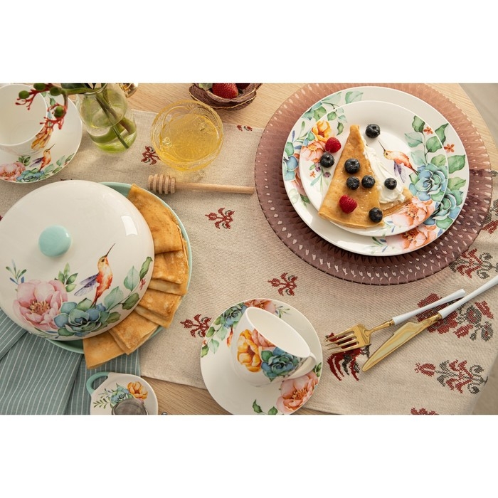 Не рекомендуется мыть посуду в посудомоечной машине и использовать в СВЧ-печи. В качестве ухода использовать мягкие губки и неабразивные чистящие средства.