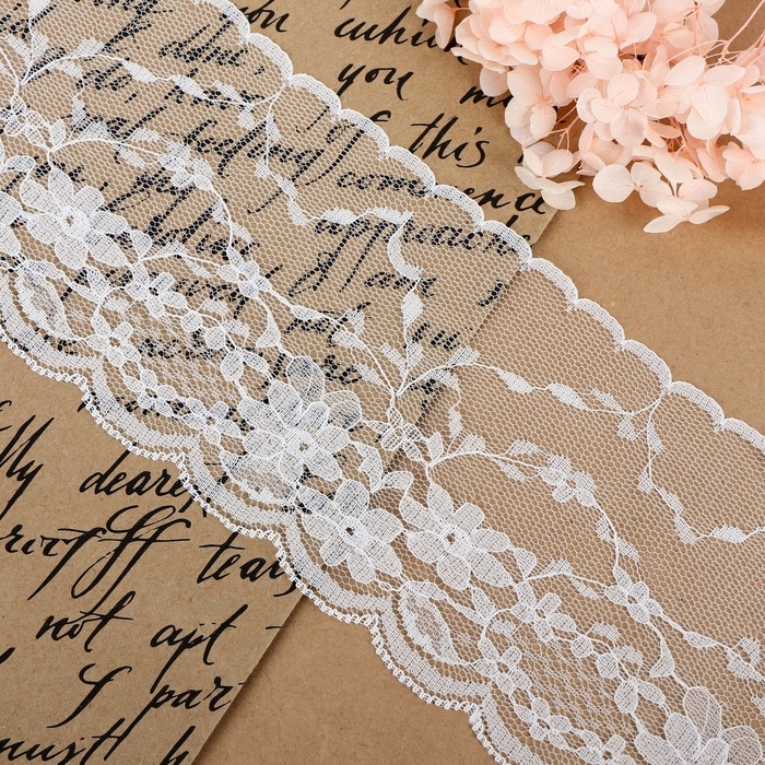 Кружево капроновое, 90 мм × 3 ± 0,5 м, цвет белый