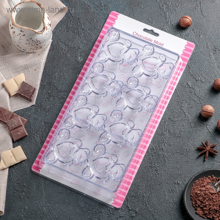 Форма для кондитерских украшений Доляна «Море сердец», силикон, 18×15×1 см, 52 ячейки, цвет МИКС
