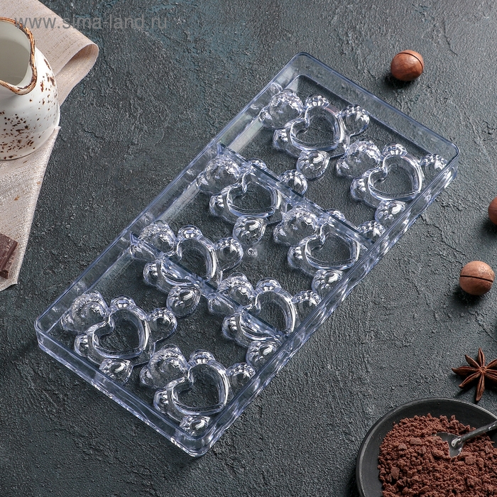 Форма конфет и шоколада «Влюблённые мишки», 28×14 см, 8 ячеек, цвет прозрачный