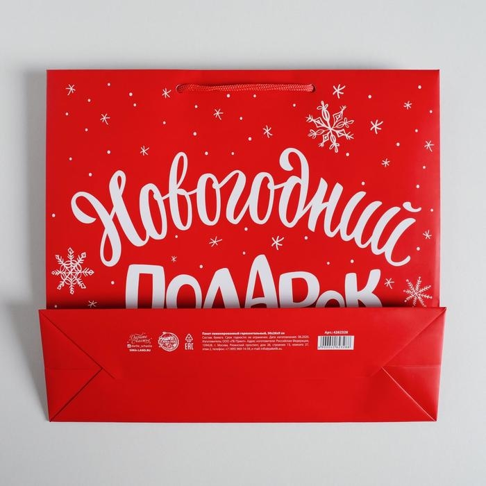 Пакет подарочный новогодний ламинированный «Новогодний подарок», M 30 х 26 х 9 см, Новый год