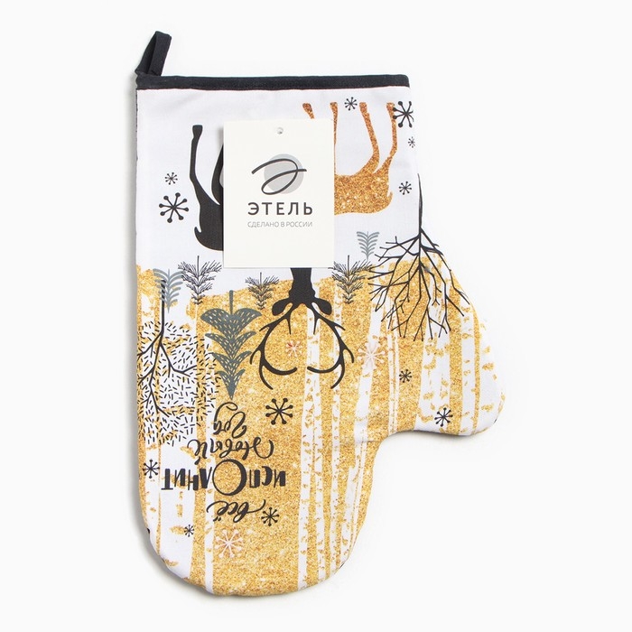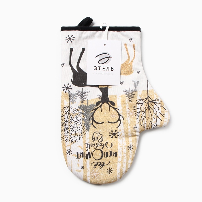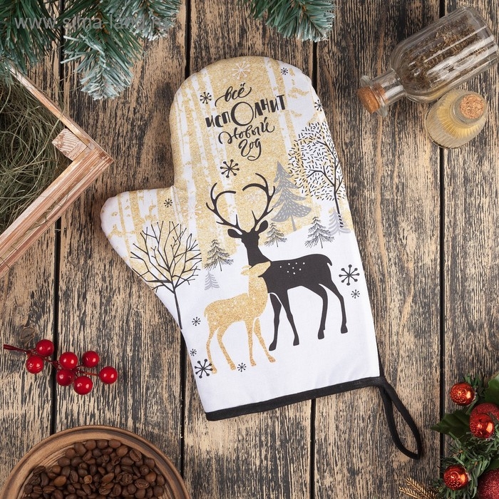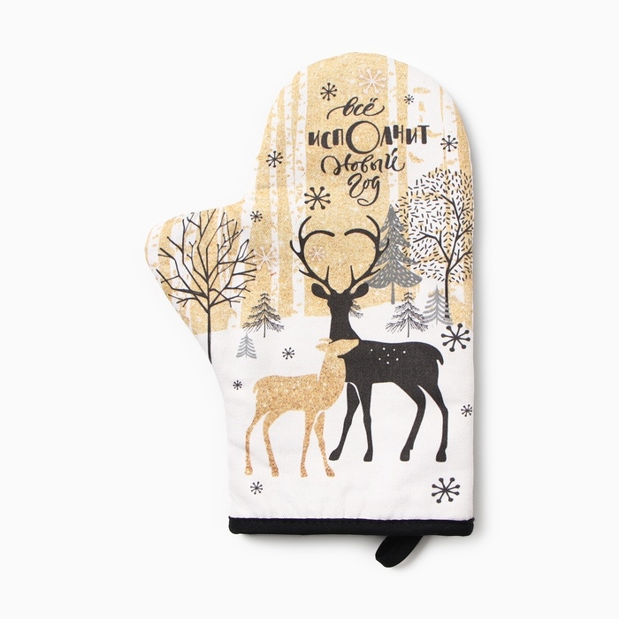 Новый год. Варежка-прихватка «Новогодние олени» 20х28см,саржа, 100% х/л, ватин 250г/м2