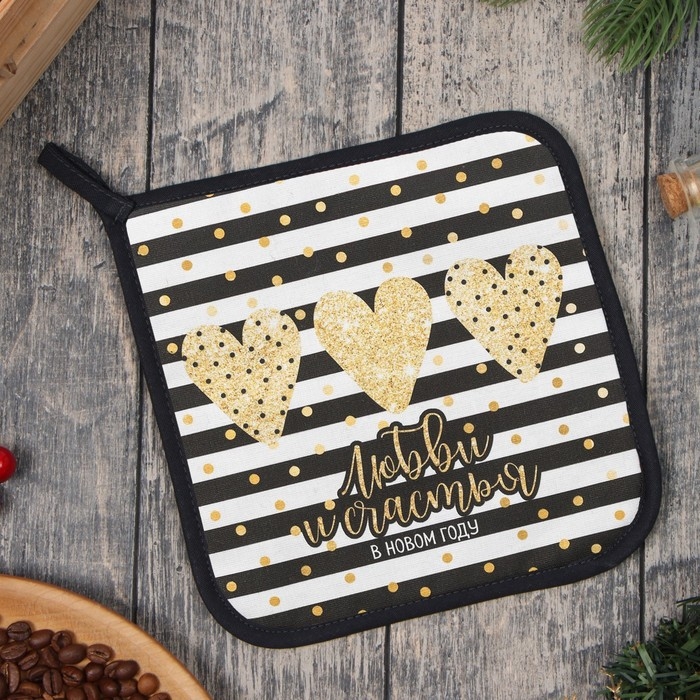 Прихватка "Любви и счастья" саржа, 19х19см,100% х/л,ватин 250г/м2