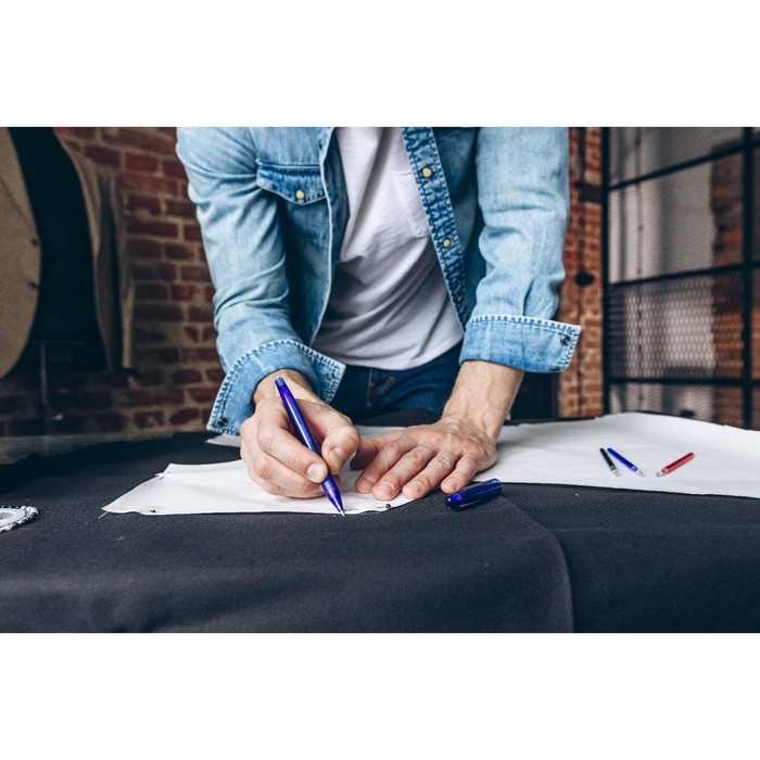 Ровные, тонкие, яркие линии — залог хорошей выкройки. Ручка для ткани обеспечит аккуратную прорисовку даже самых мелких деталей, которые будут чётко выделяться на фоне ткани. Краска легко смывается с изделия, не оставляя пятен и полос. Чернила можно удалить с помощью горячего утюга.