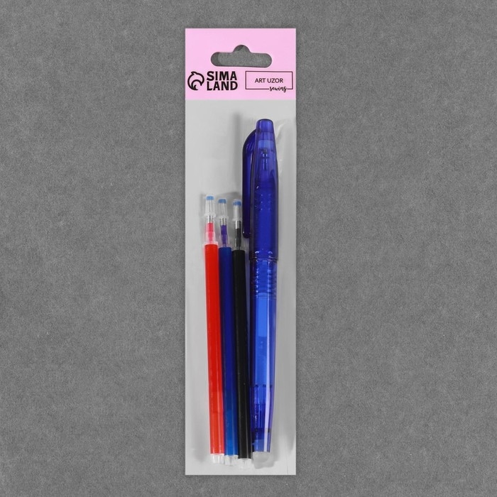 Ручка для ткани термоисчезающая, с набором стержней, цвет белый/розовый/чёрный/синий