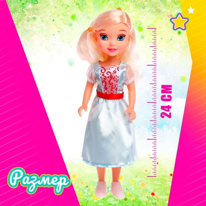 Высота игрушки: 24 см. Куклу можно купать, одежда и обувь снимаются.