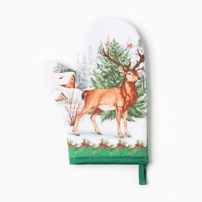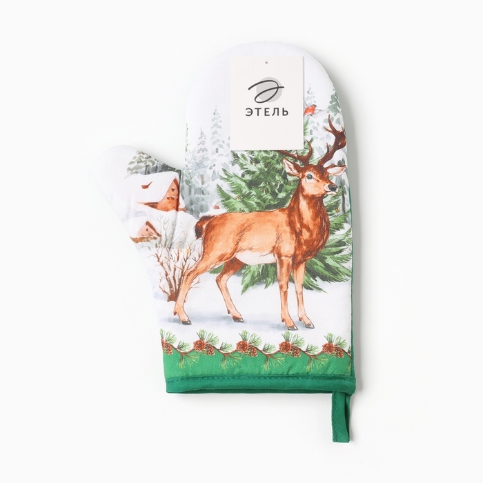 Новый год.Варежка-прихватка "Новогодний лес" 20х28см,саржа, 100% х/л, ватин 250г/м2