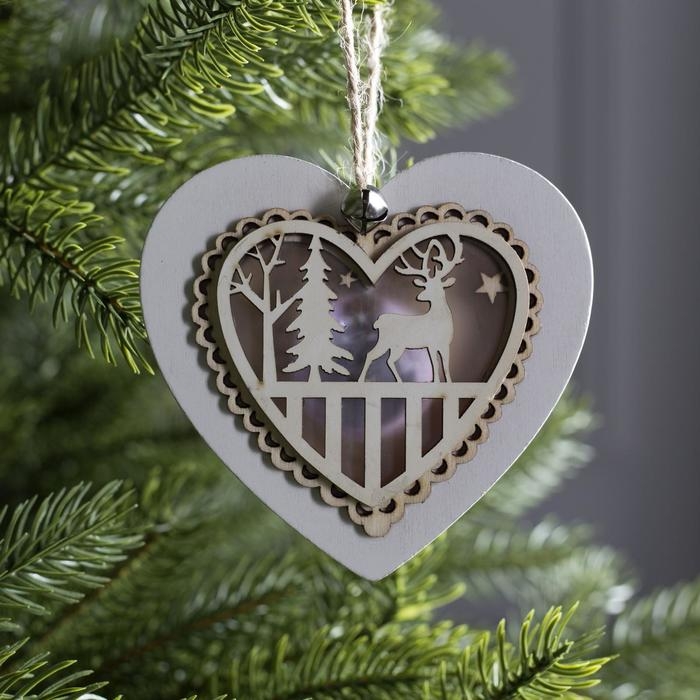 Ёлочная игрушка «Сердце с оленем», от батареек, свечение тёплое белое