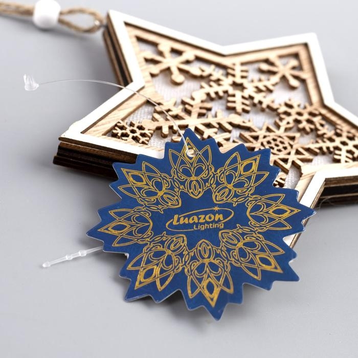 Ёлочная игрушка «Звезда в снежинках», от батареек, свечение тёплое белое