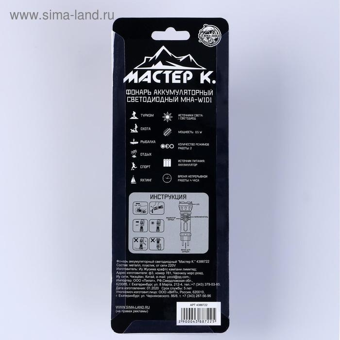 Фонарь ручной аккумуляторный, "Мастер К", MHA-W05D1 (0.5W)