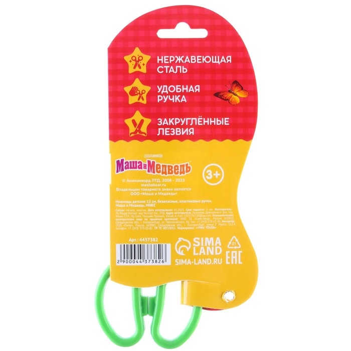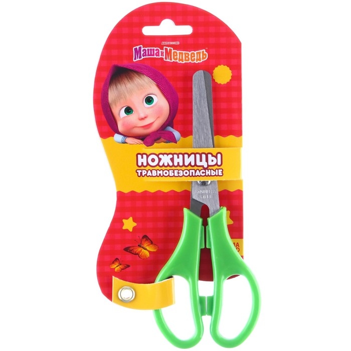 Ножницы детские 12 см, безопасные, пластиковые ручки, МИКС, Маша и Медведь