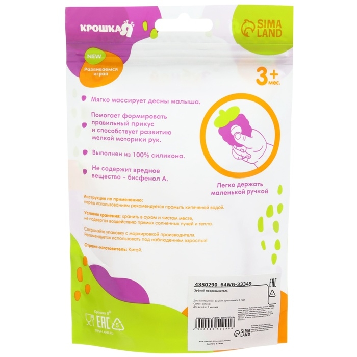 Товар изготовлен из прозрачного и безопасного материала и рекомендован для использования детками с 3 месяцев.