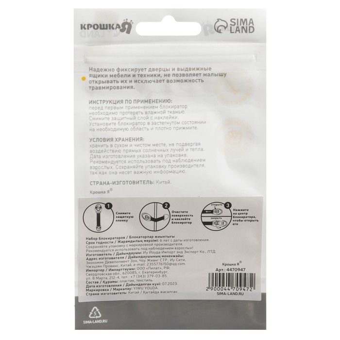 Блокиратор надёжно фиксирует створки шкафа и ящики стола, не позволяя малышу открыть их.Благодаря этому ребёнок не сможет прищемить свои пальчики и достать опасные для него предметы.Блокиратор отлично подойдёт для плоских поверхностей и будет гармонично смотреться в любом интерьере.