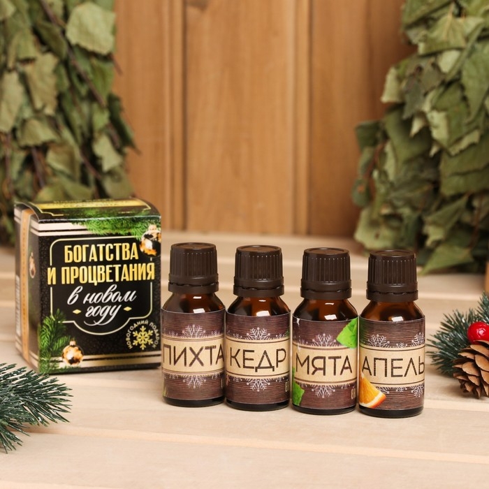 Набор эфирных масел 10 мл "В бане и душа отдыхает" пихта, эвкалипт, можжевельник, мята