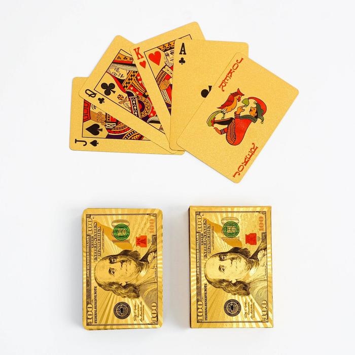 Карты игральные пластиковые "100 долларов", 54 шт, 30 мкм, 8.8×5.7 см, золотистые