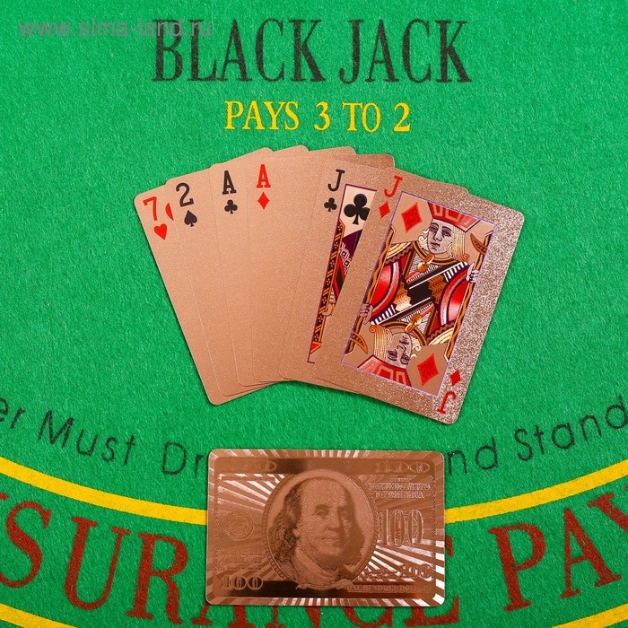 Карты игральные пластиковые "Доллар", 54 шт, 28 мкр, карта 9 х 6 см, розовое золото