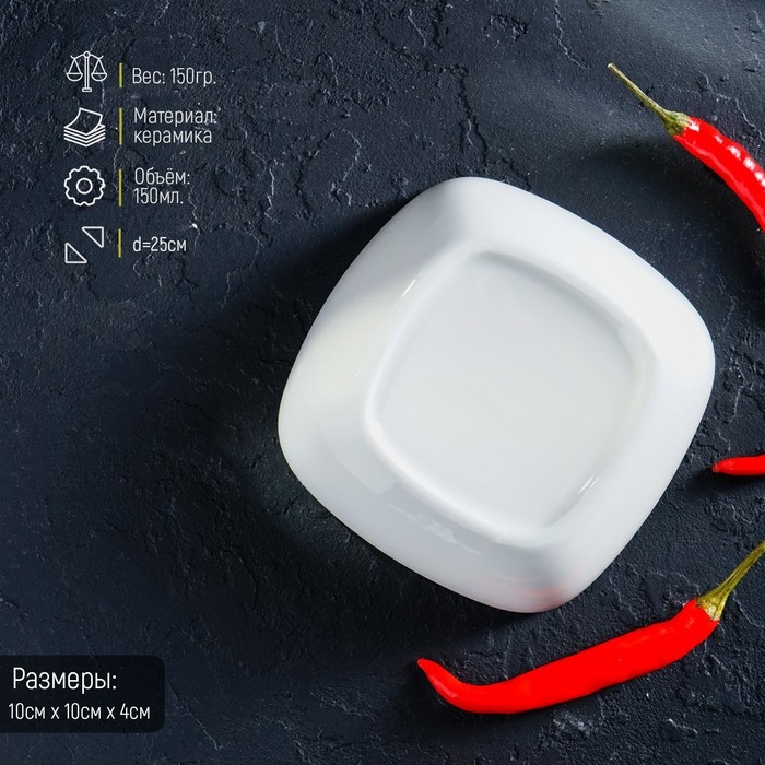 Соусник фарфоровый «Классика», 150 мл, 10×3,5 см, цвет белый