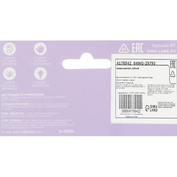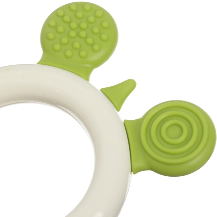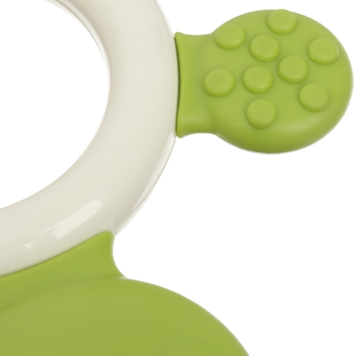 Форма ручки и размеры разработаны специально для детской ладони, поэтому малышу будет удобно её держать. Рельефная структура на поверхности изделия и его дополнительных элементов будет способствовать развитию мелкой моторики, а яркие цвета — формированию визуального восприятия мира.