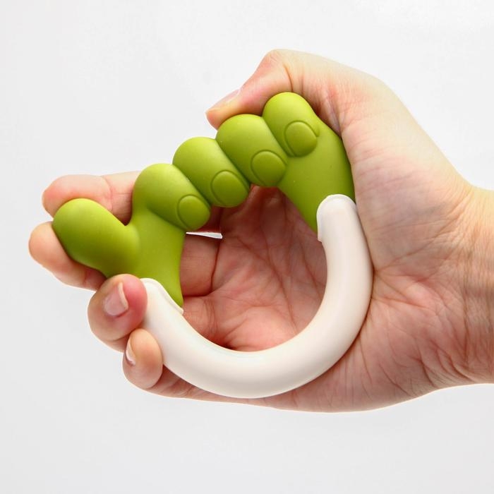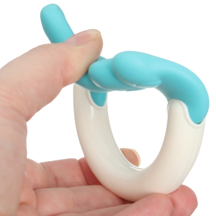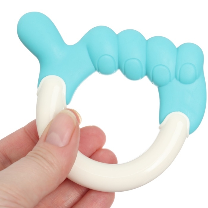 Звук в данной модели появляется при встряхивании. Причудливая форма надолго займёт внимание карапуза. Лёгкую вещицу удобно держать в маленьких ладошках, на ручке есть рельефные элементы.