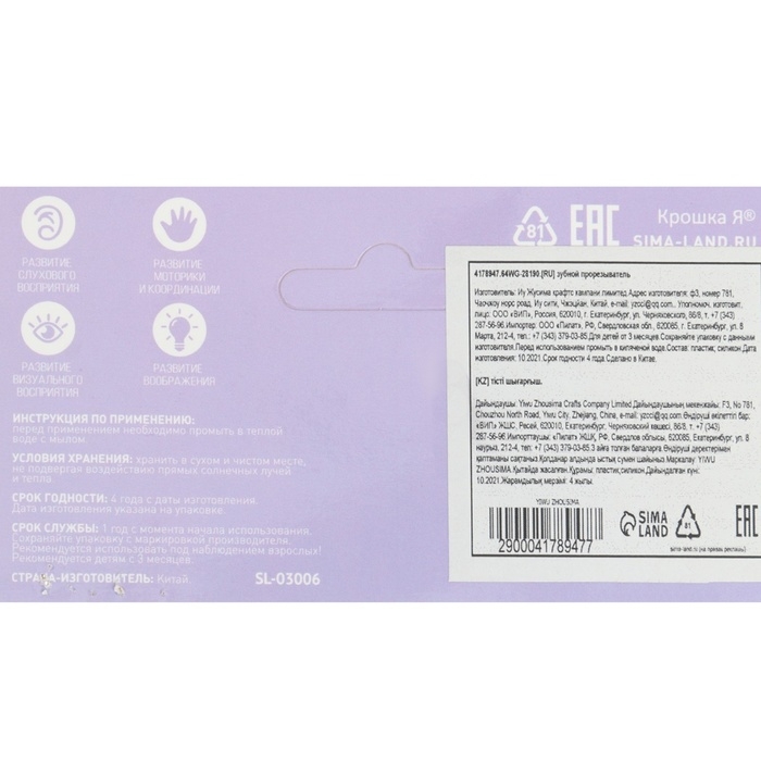 Товар изготовлен из нетоксичного высококачественного пластика. Изделие имеет сертификат соответствия ЕАС. Предназначено для деток от 1 месяца.
