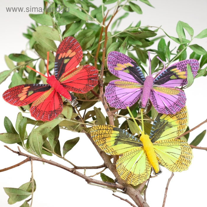 Бабочка для декора и флористики, на прищепке, пластиковая, микс, 1 шт., 8 х 7 х 1 см