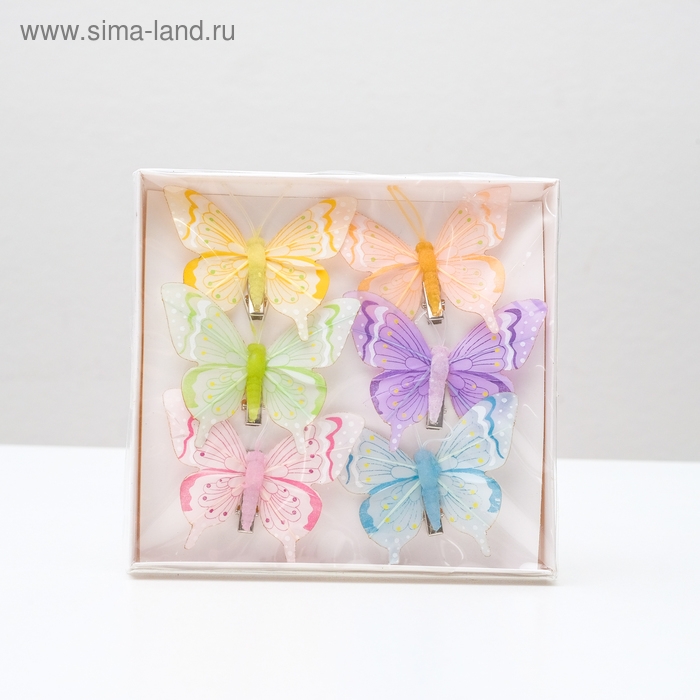 Бабочка для декора и флористики, на прищепке, пластиковая, микс, 1 шт., 7 х 6 х 1 см