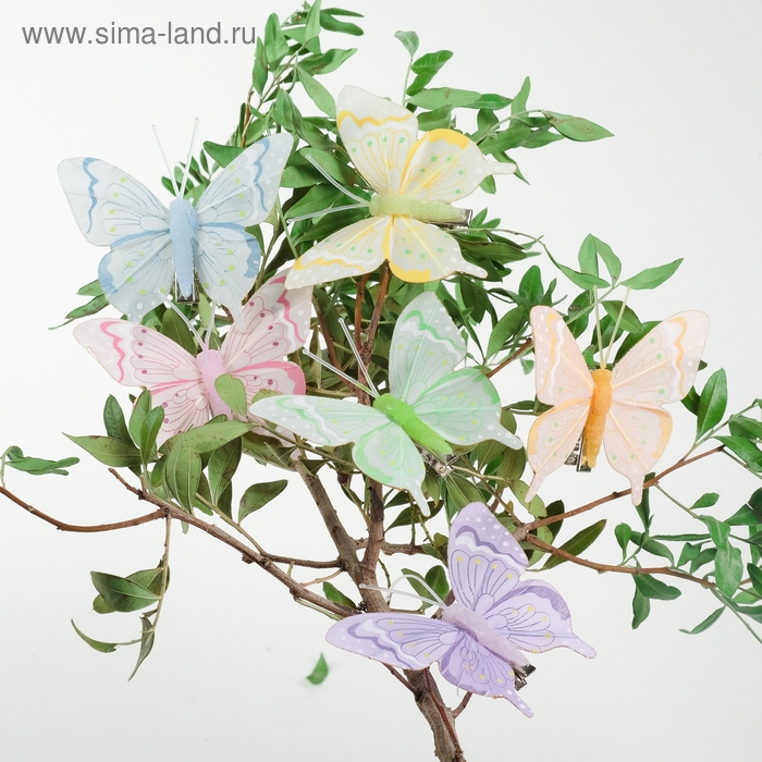Бабочка для декора и флористики, на прищепке, пластиковая, микс, 1 шт., 4 см и 8 см
