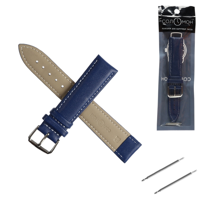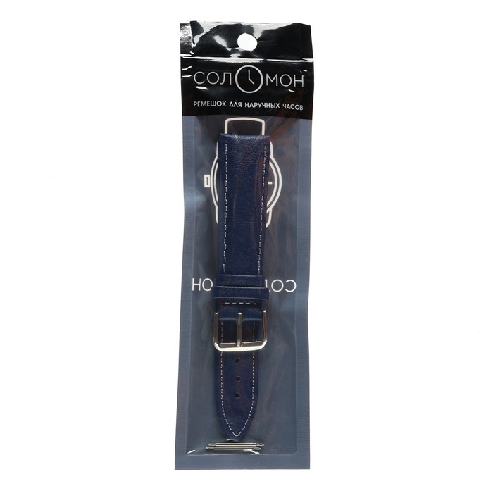 Ремешок для часов "Соломон" 20 мм, натуральная кожа, l-20 см,темно-синий