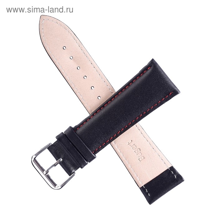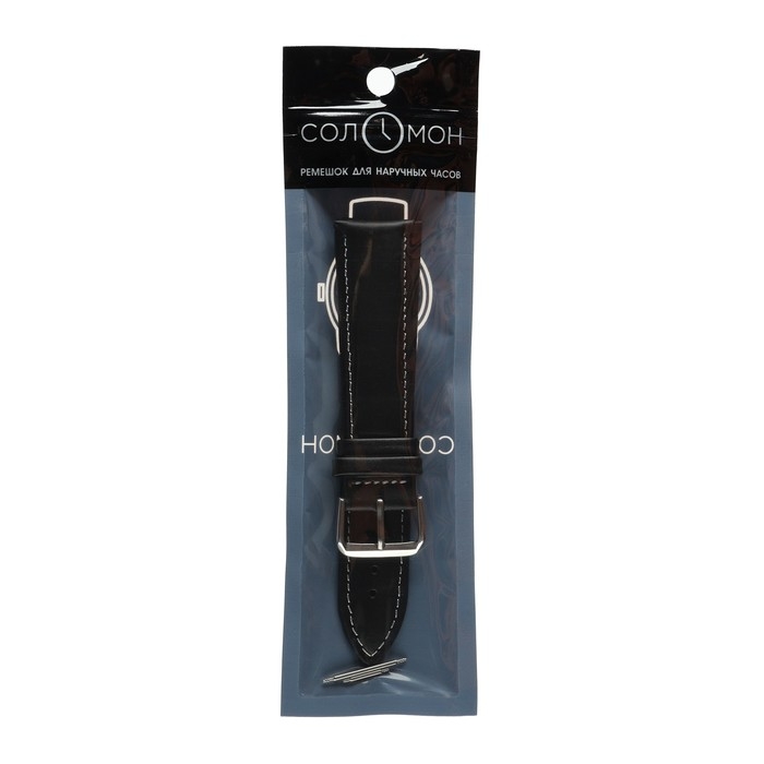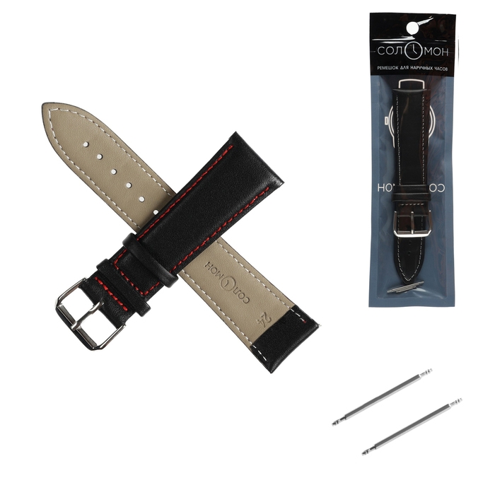 Ремешок для часов "Соломон" 24 мм, натуральная кожа, l-20 см, черный